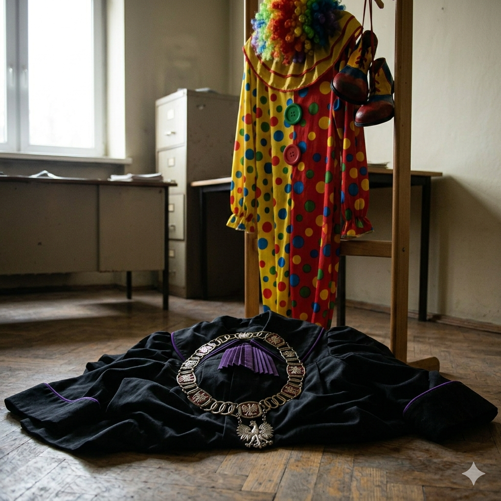 Autor bloga zamyślił się. Jak to mogło wyglądać…? 30 lipca 2025 r. Leniwy poranek, jak od ponad półtora roku w Ministerstwie Sprawiedliwości. Nic się nie dzieje ważnego, żadnych merytorycznych spotkań, zadań. Jak dotychczas upływa czas na knuciu, spiskowaniu, podkopywaniu dołków, wyciąganiu „klocków”. Nudy. A w gabinecie Ministra Sprawiedliwości siedzi były sędzia. Znany były sędzia ze spotkań z politykami. I nagle zrywa się. Przecież to już środa. Jutro zapowiedziana konferencja prasowa. Nic nie zrobiłem. Nie mam czym się chwalić, a obiecałem, że teraz będzie ostro, zdecydowanie. Premier, Iustitia, Themis na mnie liczą. Wołać mi tu Martę Nicniewartą (dla przypomnienia Dyrektor Departamentu Kadr i Organizacji Sądów). Wbiega Marta.